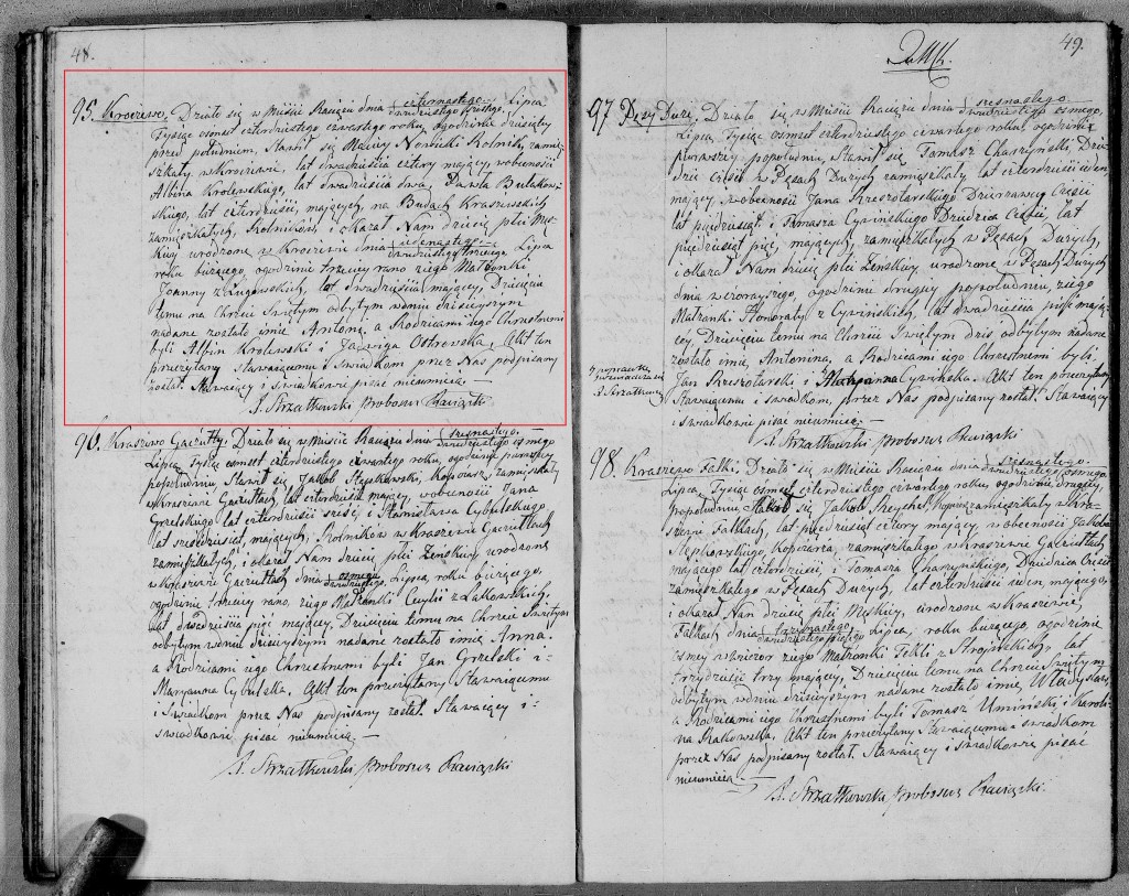 Franciszka (née Konwińska) Kantowska immigrated to Buffalo with her children after the death of her husband. She remarried in 1887 to Jan Wasilewski, and she died in Buffalo in 1921. She was the daughter of Dionizy Konwiński and Katarzyna (née Kruszka), who married in 1812 in Słabomierz (Żnin County). Dionizy died on 19 December 1852 in Wolwark (Nakło County). The village of Wolwark belongs to the parish in Szubin, and it’s likely that the cemetery there was Dionizy’s final resting place. Although Katarzyna (née Kruszka) Konwińska’s precise date of death is unknown, all of her children were born in the village of Wolwark, so it’s reasonable to suppose that she, too, might be buried in the cemetery in Szubin with her husband.